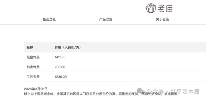 红星成本局查询发现,品牌足金饰品价钱雷同跟涨。老凤祥(600612.SH)足金饰品标价1408元/克,较前一日1345元/克的价钱上升63元/克。老庙黄金足金饰品价报1411元/克,相较昨日1345元/克上升66元/克。