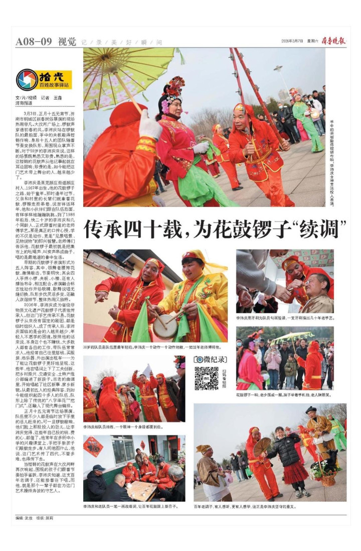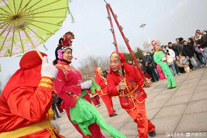 3月3日,正月十五元宵节,济南市钢城区新春民风展演的现场扯后腿不凡。大汶河广场上,锣饱读声穿透初春的风。李沛庆站在锣饱读队的最前边,手中的夹板敲得铿锵作响,死后15东说念主的团队随着节拍变换队形,周围不雅众掌声不停。关于59岁的李沛庆来说,这么的场景既熟谙又零散。熟谙的是,这铿锵的花饱读声从他记事起就在耳边回响;零散的是,如今能把这门艺术带上舞台的东说念主,越来越少了。