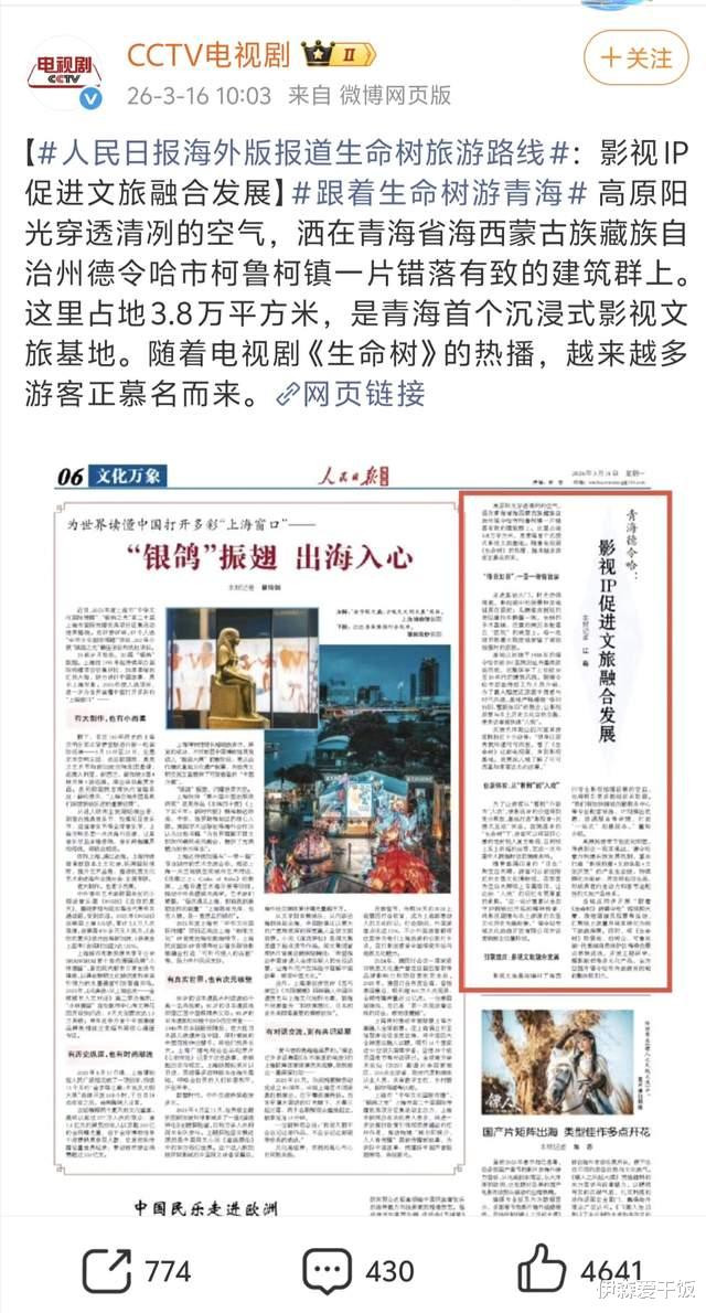 其主演的《生命树》登上《东谈主民日报》外洋版,著述以“影视IP助力文旅交融发展”为题,细则了剧集对场地文旅的正向带动。