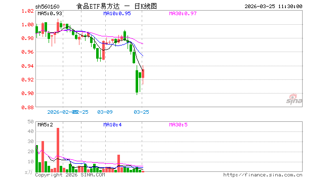 金年会 食物ETF易方达(560160)涨1.30%, 半日成交额86.53万元