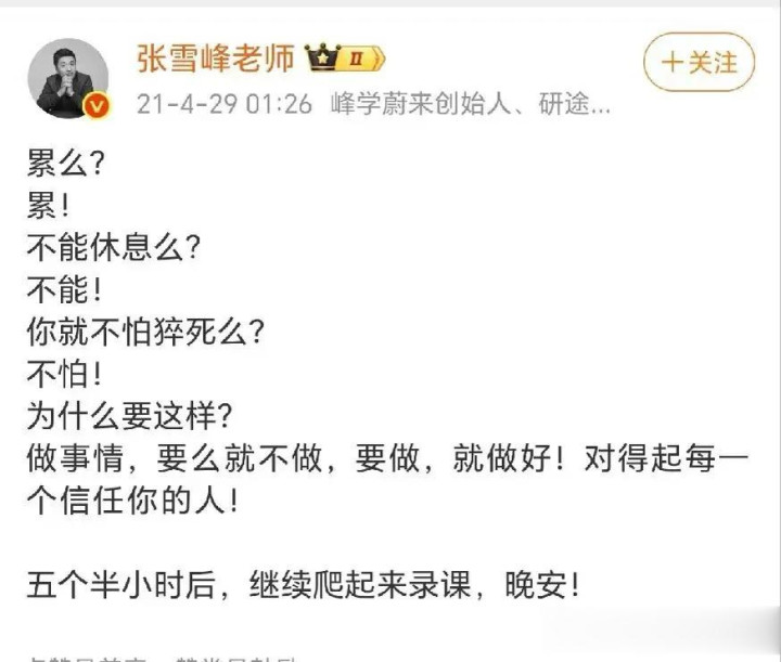 他离开后,他外交平台的言论也再次被扒出,那时的他因为工强度大,比拟窘迫,曾屡次提到了“暴毙”这个词,致使示意要是有一天我方不在了,但愿是暴毙,真的是一语成戢!