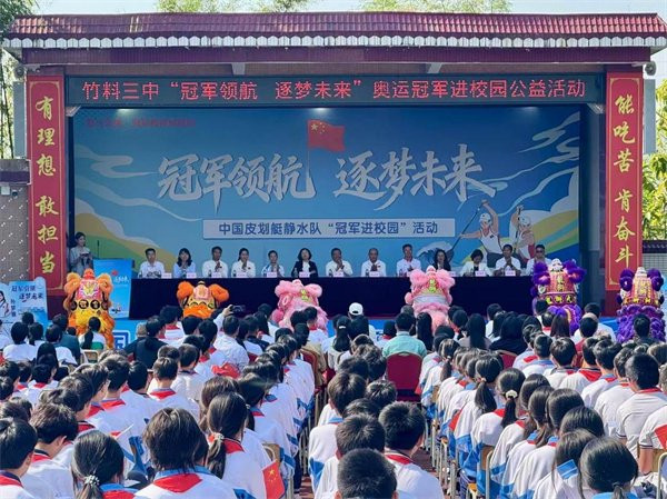 3月16日上昼,国度皮划艇静水队诈骗备战名古屋亚运会和洛杉矶奥运会锻真金不怕火弊端,赴广州市白云区竹料第三中学开展“冠军进校园”动作。东京及巴黎奥运会冠军孙梦雅、巴黎奥运会冠军季博文、2025年世锦赛冠军王楠等一众冠军迷惑员与白云区三所学校的近500名中小学生进行了深刻地疏导和互动。