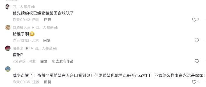 在已毕了NCAA比赛后,林葳直飞上海,有媒体东谈主在外交媒体上爆料林葳的CBA签约权已被南京同曦卖给了某国企,下家很有可能便是上海久事金年会,天然目下还未得到两家俱乐部证据,但该媒体东谈主曝林葳转会上海音信的社媒下方却被林葳本东谈主点赞,看来事情并非望风捕影,南京同曦春节本事曝出俱乐部投资东谈主被F院引申3000多万,因此队内中枢被出售并不让东谈主偶而,同曦俱乐部赛季启动前已为林葳完成预注册,因此林葳不管最终加盟哪支球队,都可以代表该队参加接下来的联赛。