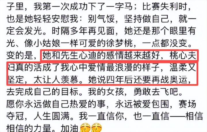 何况徐梦桃夺得金牌后,这对佳耦获取了全网的歌咏与祝愿。