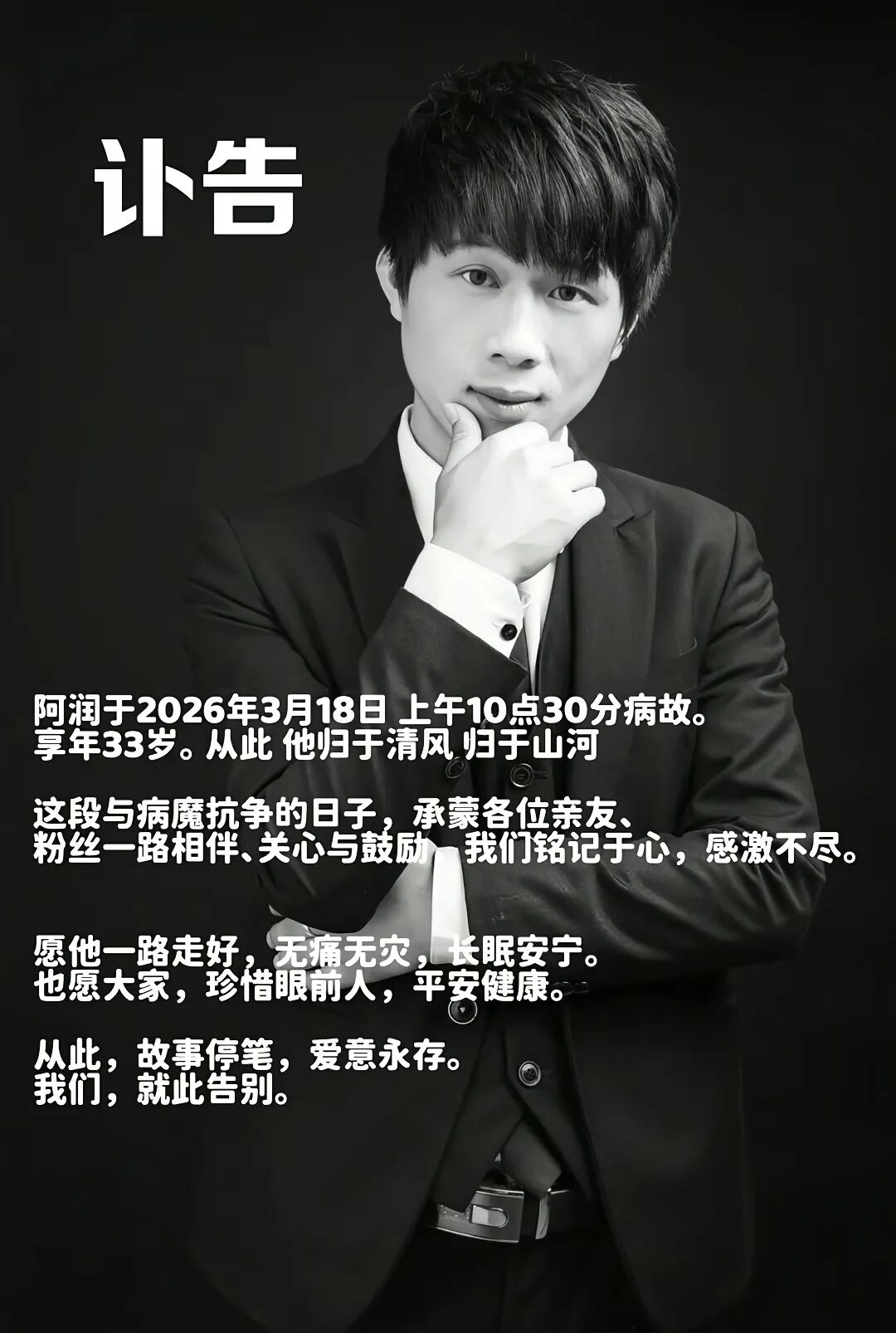 3月18日,33岁抗癌博主“润哥”死一火。临终时仍劝慰家东谈主:好好爱我方,好好爱活命,这一关能走昔时。