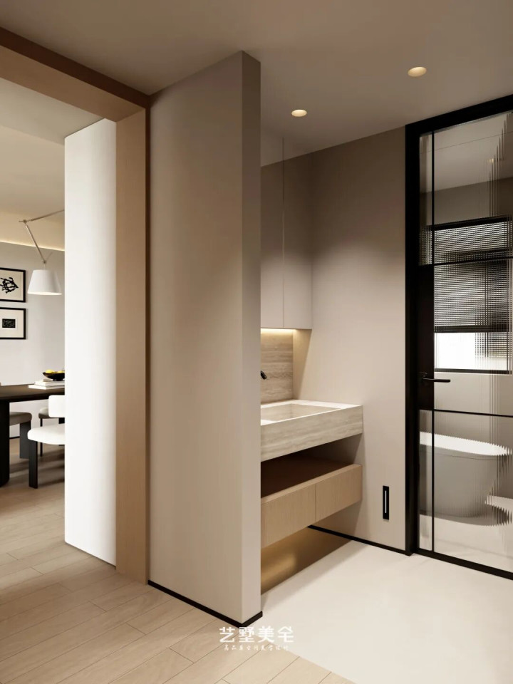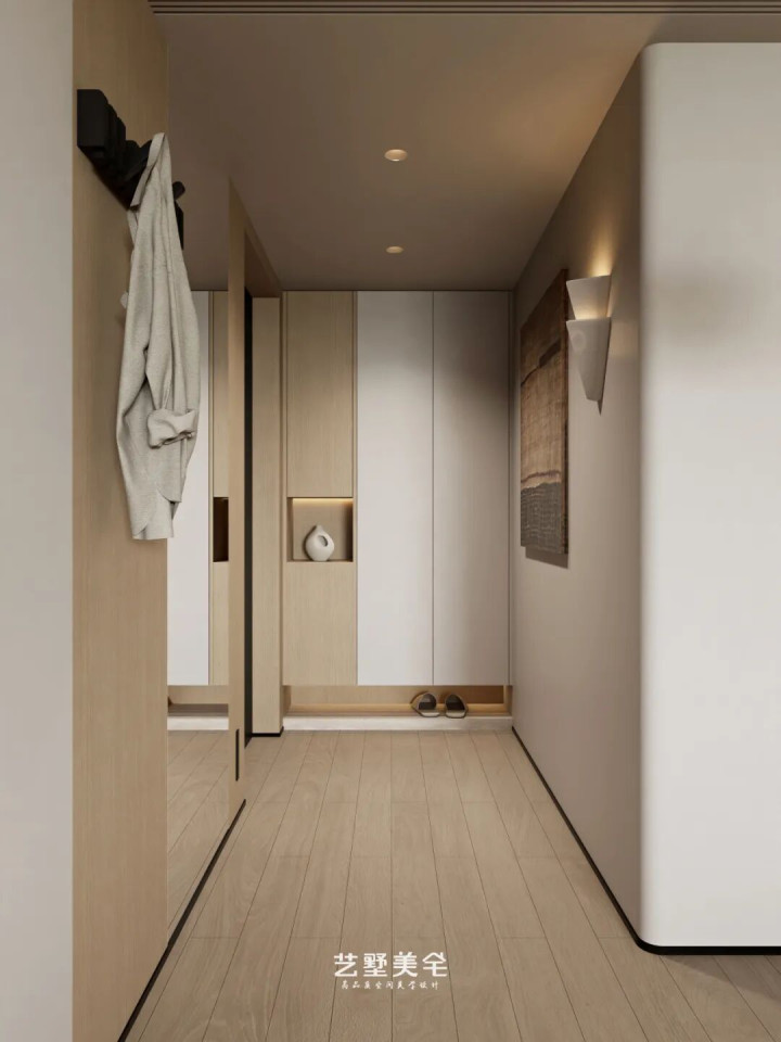 小空间亦有大巧念念,玄关功能布局紧凑而不失顺序。入户正对墙面以无框艺术画点睛,尽显空间试吃;同色系石膏壁灯与墙面形影相随,和善点亮入户氛围。另一侧成就次净衣区与姿首镜,高效搞定衣物收纳与姿首整理需求;鞋柜预留敞开格,便于唾手置物与小物成列,金年会(JinNianHui)体育实用与好意思感兼具。