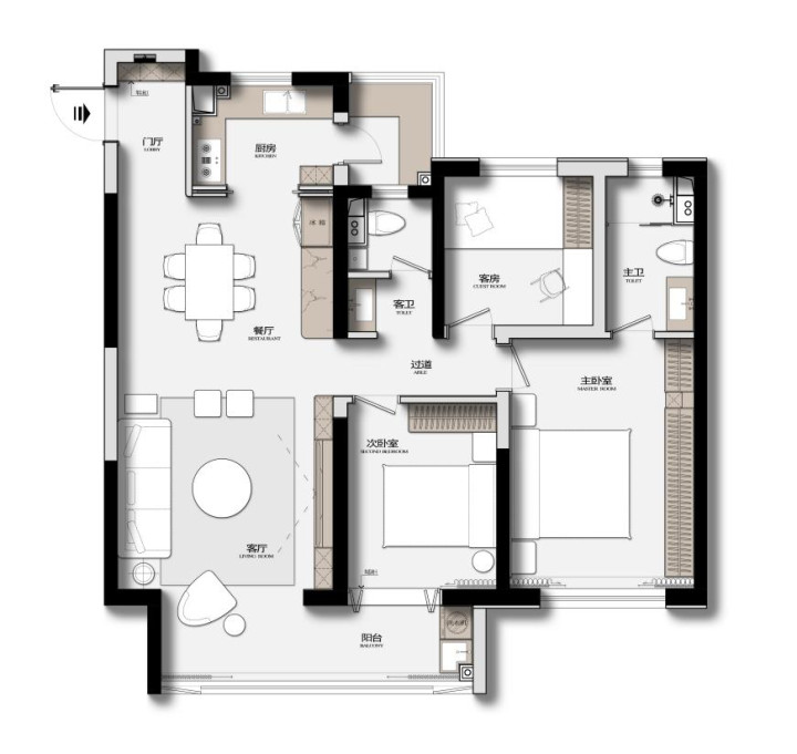 ❶保留三个卧室,每个房间需要有饱和收纳。
