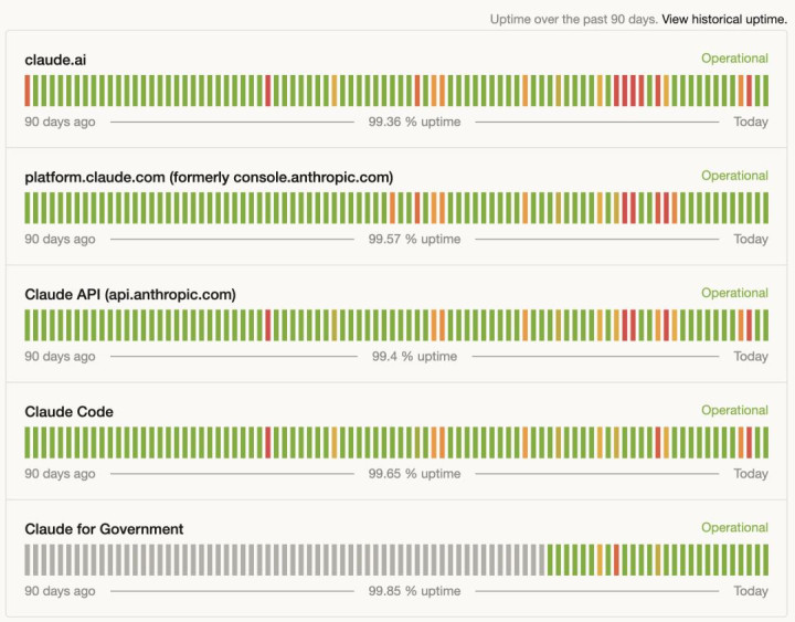 状况页拉满红灯,网页端和 Claude Code 十足连不上,反映慢得令东谈主发指。