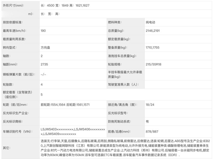 先看车身尺寸,长宽高为4500、1849、1621(1627)mm,轴距2735mm,筹商到测量症结,基本和MG ES5保抓了一致。但仔细看前后轮距的讲述,MG4X居然有两组不同的数据,别离是1554/1561、1564/1571mm——不同轴距同期出当今一款车上,意味着无意率是两个平台。